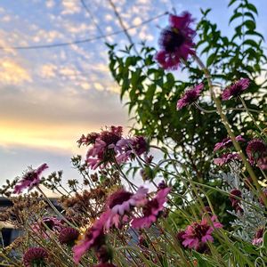 こんばんは🌙*.。 🏷ニャンニャン祭り参加しますฅ^•ω•^ฅ 1枚目 白いコスモス シーシェルさん🤍 ストロー咲き 今日は思ったより☔降らずでした。 夕方、川沿いのオシロイバナを見に行きました。 寒いからか…もう終わり?? 沢山咲いていたのがすっかり少なくなってました(´・_・`) 遠くにほんのり夕焼け🩷 見えました(ღ*ˇ ˇ*)。o♡