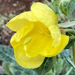 散歩道、足元に地面から、ひょっこり顔を出してた、今日のお花🧡月見草の花🌝気を付けないと踏まれますよ!❢🤫