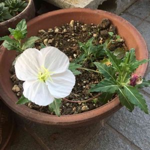 90歳になる祖母の部屋の前に咲いてる月見草。私は今日初めて見ました。 夕方には咲くと言われてたのに忘れてた💦今見たら白い花が咲いてました。朝にはピンクになるそう。また忘れないで見ないと😣名前の通りのお花なんですね。
