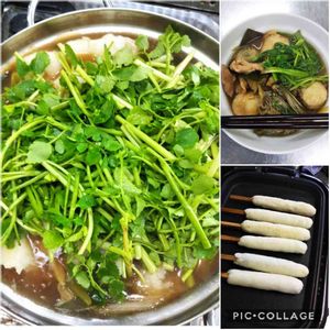 人生初の 秋田きりたんぽ鍋 頂きました🍜😋♥ ご両親が秋田出身の 友達が 本場仕込みの きりたんぽ鍋をつくって 皆でご馳走になりました。 比内地鶏と 鶏ガラスープ 干ししいたけ、舞茸、ごぼう、長ネギ 最後にセリをドバっとのせて。 きりたんぽは ご飯を半分つぶして 秋田杉で作った棒に 握りつける??感じかな。 初体験❤ だまっこと一緒に作りました。 秩父は小麦粉を練った すいとんが主流。 お米の塊はまた違った 感触でした🤔 雪深い秋田の冬の ご馳走ですね🤗💕
