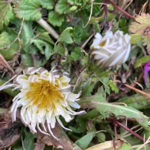 白花タンポポ斑入り ナンチッテ😜 16:30'はタンポポさん閉店時間でした😅