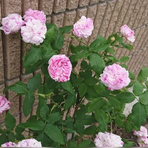 白地にピンクの絞りが個性的なバラ バリエガタ ディ ボローニャ 今年も沢山の花が(ˊ˘ˋ*)♡