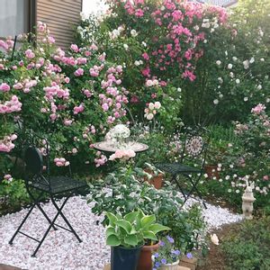 おはようございます✨✨ 雨が降りだす前に撮った庭です🌹 今では雨で乱れたバラたちの姿が(๑o̴̶̷̥᷅﹏o̴̶̷̥᷅๑) 早く元に戻してあげないと💦