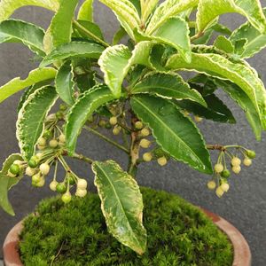 こんにちは 今朝の庭巡り 班入り 白実万両 機種変更したのでまだ上手く使えません😂