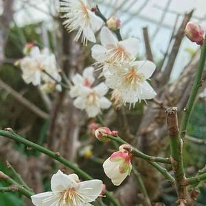 こんばんは🌃 一日中☔だった今日… 有休消化のため家でごろごろごろごろ💦💦 おかげさまでの〜んびりできました☺ な〜んにもしない贅沢な一日でした😅 春を待つ小さな庭に梅の💠が咲き始めました🙆 鉢植えから地植えにしたまだ小さな木ですが💦💦 梅のお花って💠おしべがチャーミングですね😉