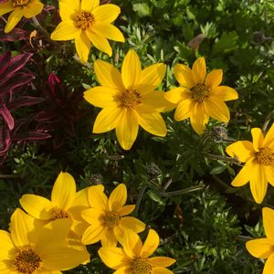 ビタミンカラー② ヒデンスさん🌼 ノースポールの白とコラボさせたくて一緒に植えたけど、ノースポールはまだ咲きそうにないです😅