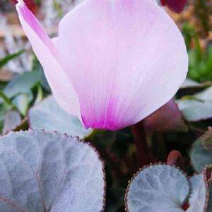 何色かはお楽しみと書かれていた プラチナリーフのシクラメン 淡いピンクの花でした
