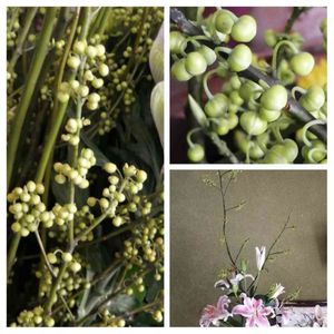 🌿アオモジ 一両~億両までの寄植えの花屋さん💐 切り花も置いてある ふと見ると心惹かれる植物が目に入る💕🌿🌼✨ アオモジとの事… クロモジとの違いは枝が青いままだから 柑橘の香りが有り クロモジ同様 高級爪楊枝に使われるとか… 無数の蕾は花開くと白と🌿🌼🌼🌼 百合と生けてみたけど🤭 開花して楽しんだら挿し木に挑戦🌿🌼 二度美味しい🤭😁