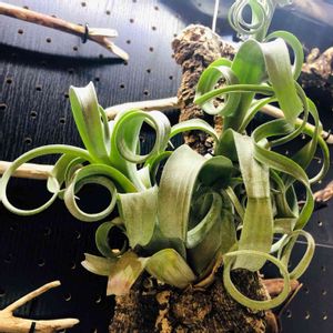 チランジア カーリースリム 何かに使えるかもと買ったままインテリアに埋もれていた流木、ビカクシダ用に買って余っていた水苔と透明ミシン糸、そこら辺に落ちていた紐(!)で、見よう見まねで着生チャレンジをしました。頑張って発根+着生して欲しいです。 ……自分で言うのもアレですが、なんだかエモく出来過ぎちゃったな(いいけど)