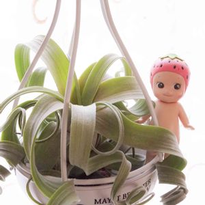 チランジア(エアープランツ)のカーリースリムです✨ 葉先がくるんくるん💓 今日は15日イチゴの日と言う事で、 🍓のソニーエンジェルちゃんとコラボ😘