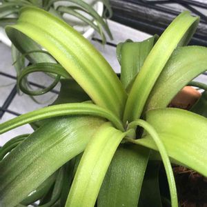 チランジア カーリースリム LED栽培に移行してからちょっと様子が… これって葉焼けですかね… 水やりした後分かりやすくなるんですけど… LED環境やめといた方が良いですかね? まさかカーリースリムの斑入りって訳じゃないですよね。笑笑