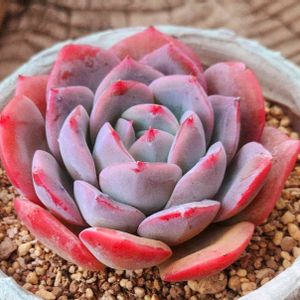 茨城県のリラシア苗 『超ベリーベリー』をお迎えしました。(左) 相方からのクリスマスプレゼント♪ 好きな色(∩˘ω˘∩ )♡ 好きな形(∩˘ω˘∩ )♡ 同じくリラシア苗の 『超ベリー』(右)と並べてみました。 (日当たりの良い場所で1ヶ月、赤みが増しました) 以前はベリーが1つだったのに いつの間にかベリー×2に変わっています^^; 比べた感じ同品種に見えますが、詳細は不明。