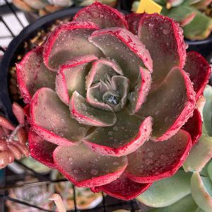 先日のドス黒赤い、多肉です。 昼間だと迫力ないね😅 名前にレッドが付いてるって、だけで購入した子 名前通り! エケベリアかな?