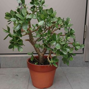 こんにちは😊我が家の金のなる木🌱徳島市で散歩をしていたら至る所のお家の玄関に大きな金のなる木を発見🧐徳島県の貯蓄率にあやかりたいと真似っ子で小さな苗を購入🤭1度大寒波でやられましたがチョンパした子が復活し現在50センチ近くに大きくなりしかも挿した子全てがついて里子に出すに至りました🥰💕幸せのお裾分けが出来た金のなる木です🌱