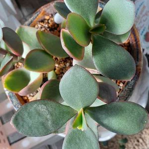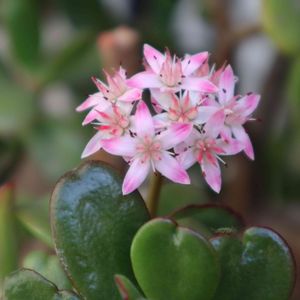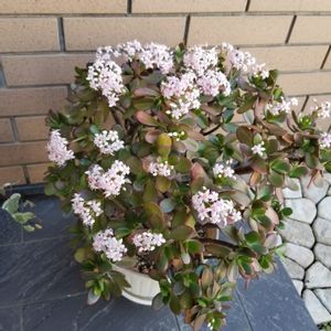 母が友人から 挿し木した植木鉢を いただきました 金のなる木 花月