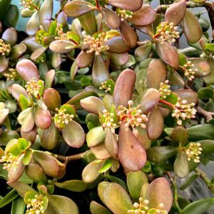 今日は暖かく良いお天気です。 玄関先にある金のなる木。 毎年恒例でお花が咲いてくれます。 今年もやっとひとつ、咲きました。
