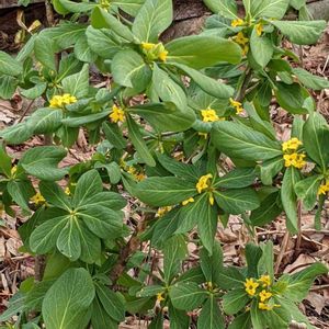 住宅街の一画で沈丁花によく似ていますが、花が黄色?