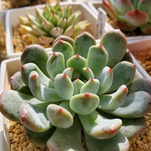 🏷ムッチリぷくぷくの日 に参加します😊 寄せ植えの中のビヨンテ💕 爪先のポッチリがたまらん😋