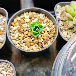 お迎え後に冬を越え半年くらい。 みんなかなり成長しました。 特にホリダは隣の鉢に突き刺さらんばかりの勢いです。鉢増ししないと… 成株の特徴が少しずつ出てきたかな? パリーが予想外に成長がゆっくりですね。