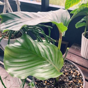 カラテア・オルビフォリア 去年通販で買った時カイガラムシセットで届いてがっかりした株ですが冬も越せて今年は葉をそこそこ展開してくれてます。 水やると一瞬で皿に抜けるような土で植えてありますが結構合ってるのかな…?