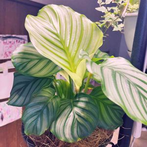 カラテア 今年、生まれた葉っぱだけです。 去年からの葉っぱは寒さで汚くなってたので✂️しました。 色が薄すぎるのは、陽当たり悪すぎでしょうか😅😅