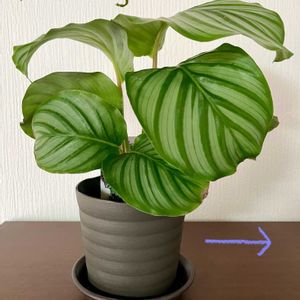🪴カラテア オルビフォリア すくすく育ってくれています✨ 今回の新芽が上の葉でちょっと つまっちゃってるオルビーちゃんです。笑 どの位置に葉を広げたいの? もしかして、ちょっと困ってる?( *´艸`)うふふ💚 🏷️毎月16日はトトロの日 参加させていただきました⸜( ´ ꒳ ` )⸝