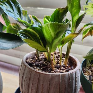 我が家のカラテア🌿 みんな元気です( *˙ω˙*)و グッ! 他にも気になるカラテアはたくさんありますが、これ以上増やせないので今は我慢( ˋωˊ )ムサイカ欲しい… ホワイトフュージョンは春に鉢を大きくしたばかりだけど、葉が増えて土の表面が見えなくなっていたので数日前に株分けしました🪴 根をほぐして分けるのに30分以上費やしたので絶対弱ると思っていたけどなんとか無事です(´∇`)ホッ 5つに分けたので1つはご近所さんにお裾分けし、残り4鉢( ・ω・)置き場ガー‼︎ タイビューティもそろそろ株分けしなきゃ| ε:)_🌱