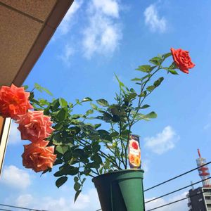 青空にバラ🌹 お花が大きくて垂れてしまうダークサンレモさん(´・ω・)