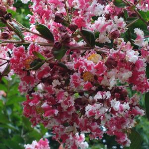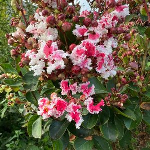 百日紅(サルスベリ) 夏祭り✨ なんだかだんだんと白い部分が減っている気がします…それはそれで可愛いから良いのですが😅 個人的には『夏祭り』というより『氷イチゴ🍓』を連想させられます🤔 もしくは新潟県民なら『桃太郎』かな笑