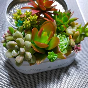 多肉の寄せ植えをお迎えしました💖 可愛いです💞 12✕6センチの缶にびっしりと植わっています。 名前を知りたいので、分かる方がいらっしゃったら教えて下さい🙇♀️