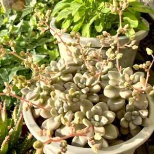 ポイポイ寄せ植え鉢。°○。* ダルマ秋麗の花芽は、グラプトペタルム属らしく枝振りが良い。 花芽を挿しておくと、木立ちになるという投稿を見たので、やってみようかな🤫💓