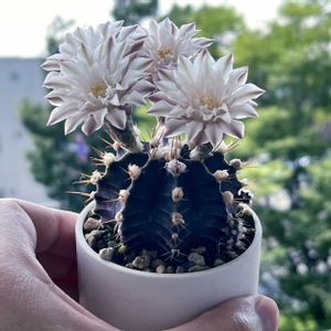 緋牡丹錦。 大きくなってきたので植え替えました。 よく見ると、刺座がモゾモゾ。花芽!? うちのベランダではギムノは咲いたことないから、楽しみ✨✨ 小さな幸せを見つけた気分です☺️