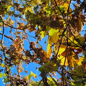 🟡ネナシカズラ🟢No.2 (ヒルガオ科 サネカズラ属) ・花期 夏から秋 ・ツル性寄生植物 ・一年草 ・生薬に使われる 全草 種子 ・寄生した植物を枯らす ・駆除は焼き払うしかない ・茎は地面から生えるが他の植物に寄生すると根がなくなる ①②木の下から📱パチリ クズもネナシカズラの上に〰黄葉中🍂 綺麗✌️ ③11/10投稿から実もツルも茶色に🧡 ④中に種が。1㍉程の白っぽい種が3つ入ってました🤭 ⑤宿らせて貰ってる木🌳はアカメガシワであってました😄 まだまだ元気そう…木だからそんなに弱らないのかな❓ 仲良く共存してるようにも見える❓謎だ😊
