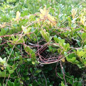 ネナシカズラ 地からは出ていなくて 海藻のよう。少し異様な光景です。 でも新しく葉芽?茎? 伸びて、生きてる事を知らせてくれています。 検索してネナシカズラと知りましたが、どうやら離れた自然公園で過去にも見ていたよう。多分、近寄れない場所でしたが ここは近くで観察出来ます。 地域により絶滅危惧種 小さな白い花?も咲くらしい。 今後の観察が楽しみです。