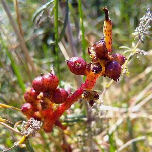 ずっと、いろんな所に、網のゴミが落ちてると思ってた物に、花?実?らしき物が💦 寄生植物だそうです😱