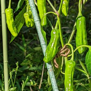 『ししピー🫑』 ししとうピーマン ナス科トウガラシ属🍆🌶 ししとう✖︎ピーマンの 中間です‼️ 辛味がなくて、種ごと食べられる ミニピーマン🫑です。 ピーマン特有の苦味がなく 食べやすいです💕