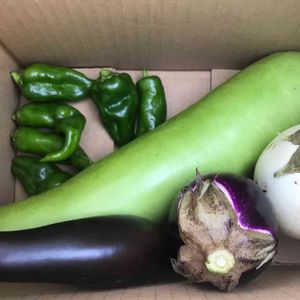 収穫野菜を空き箱につめてみたら夏野菜ギフトになりそう🤩✨一箱いくら位かな⁉️🤔