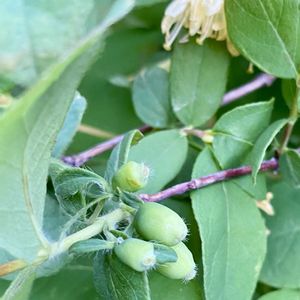 長野庭便り💌𓂃𓈒𓂂𓏸 「ハスカップ」収穫🎶 ブルーベリーより一足早くハスカップの実が色付いて来ました🎶上はハスカップの花の写真です。ハスカップ┅まばらに熟するので収穫した度に冷凍保存しています。ブルーベリーと合わせたジャムが好きなので~ ひたすら貯めてゆきます。 ブルーベリーの🌳同様┅ 今まで放置し過ぎて枝ボーボー💦収穫量上げる為にこれからはちゃんとお世話せねば💦