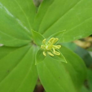 大日ヶ岳散歩 まだありました ツクバネソウ キヌガサソウに似ています 大きな葉っぱが四枚 登山道の下〜頂上までずーっと 生えています