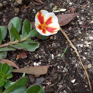 イタリアから来たポーチュラカ「フェリーチェ」🏵🇮🇹 挿し芽がモサモサになってきました!そろそろ切り戻し?🤔 広がって、サークルが、意味を成してません💦 白花かすみ草と寄せたのに、あの子はどこかに消えてしまいました❀