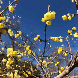 先日お出かけした昭和記念公園。 ろうばいが咲いてました〜🌼 空の青とのコントラスト🔵🟡イイですねぇ。