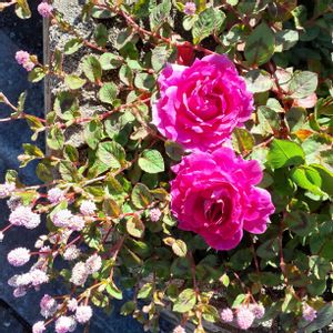 こんばんは(*^^*) この季節はあちこちで実が付く 植物が多くて嬉しいですꔛᡣ𐭩˒˒ ビッグベリーも真っ赤になりました! その後ろでは、ミニバラ・コーヒーオベーションが咲き始めましたദി ᷇ᵕ ᷆ )