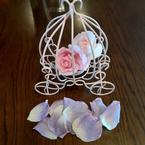 こんにちわ❤️ 今日の埼玉は雨で肌寒いです ☔ 「今朝カットしてきたバラさん達」 ①馬車とバラ🌹✨💍✨ ②ブルーフォューの花びらを花の形にして真ん中に千日紅を入れてお花を作りました🎵 ブルーフォ-ュ-は何て素敵なカ ラーなんでしょう😌😌😌❤ ③今朝のシェラザード🌹☔なのでカットしました🌹 ④マチルダ🌹かわいい🎀 ⑤雨の中咲いていたゴールドバニー🌹💛👯 蕾があがってきたけど寒そう😲