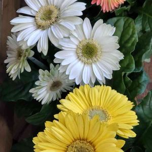 鮮やかな花色のこの花は ガーベラです。 暑さ寒さにも強く 丈夫に改良された宿根ガーベラで 早春から晩秋まで花を咲かせます。 花色は 赤 オレンジ 黄色 白 ピンク 紫色 緑など様々で とても カラフルで 綺麗です。 南アフリカ原産。 キク科ガーベラ属の多年草。