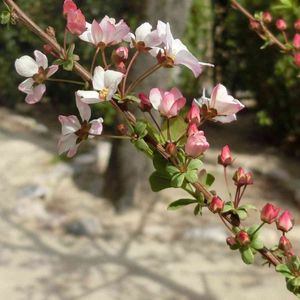 今日のお花ユキヤナギは白花が多いですが 花びらの外側が柔らかいピンク色のピンクユキヤナギです。 フジノピンクの別名でも呼ばれています。 ちっちゃくって濃いピンク色の丸い蕾も とてもキュートです。 咲き進むにつれて 花びらの色はピンクから白に変わっていきます。 中国原産。 バラ科シモツケ属の落葉低木。