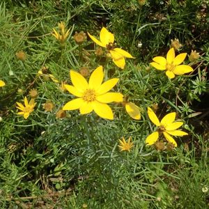 宿根コスモスとも呼ばれるイトバハルシャギク(糸葉春車菊)は名前からも分かる通り糸状の細かい葉っぱが特徴です。 8枚の花びらは原色に近い鮮やかな黄色で、辺りをパッと明るく彩ります。 暑さ寒さにも強く地下茎を伸ばして広がるため殆ど手間も掛かりません。 北アメリカ東部原産。 キク科ハルシャギク属の多年草。
