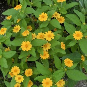 メランポジュームはコンモリとして明るい黄色の小さな花を次々と休みなく咲かせています。 高温多湿の日本の夏にも強く 花が咲き終わると直ぐ新芽が伸びて新しい花が咲くので 花ガラ摘みも必要なく綺麗な花姿を保ちます。 開花期間も4月〜11月と長いのもいいですね。 キク科メランポジューム属の1年草。 メキシコ・中央アメリカ原産。