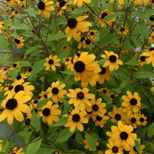 炎天下でも真っ直ぐ伸びて、小さな ヒマワリのような花を一面に咲かせるルドベキア! 正に夏の似合う花ですね! 北アメリカ原産。 キク科ルドベキア属の1年草又は2年草