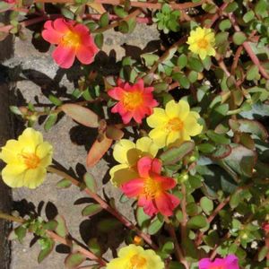 小振りながら存在感があり周囲をパッと明るくするポーチュラカ! 茎も葉っぱも多肉質で暑さには強いです。 種は出来にくく挿し木で増やします。 南北アメリカ原産。 スベリヒユ科ポーチュラカ属の1年草。