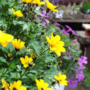 ビデンス はウインターコスモスとも呼ばれており コスモスをちっちゃくしたような花姿です。 このビデンス ゴールデンエンパイアは 分枝がよく ビデンスの中では比較的花径が大きいのが特徴です。 秋から咲き始め 春まで 長期間 花を楽しめます。 メキシコなど原産。 キク科ビデンス属の多年草。